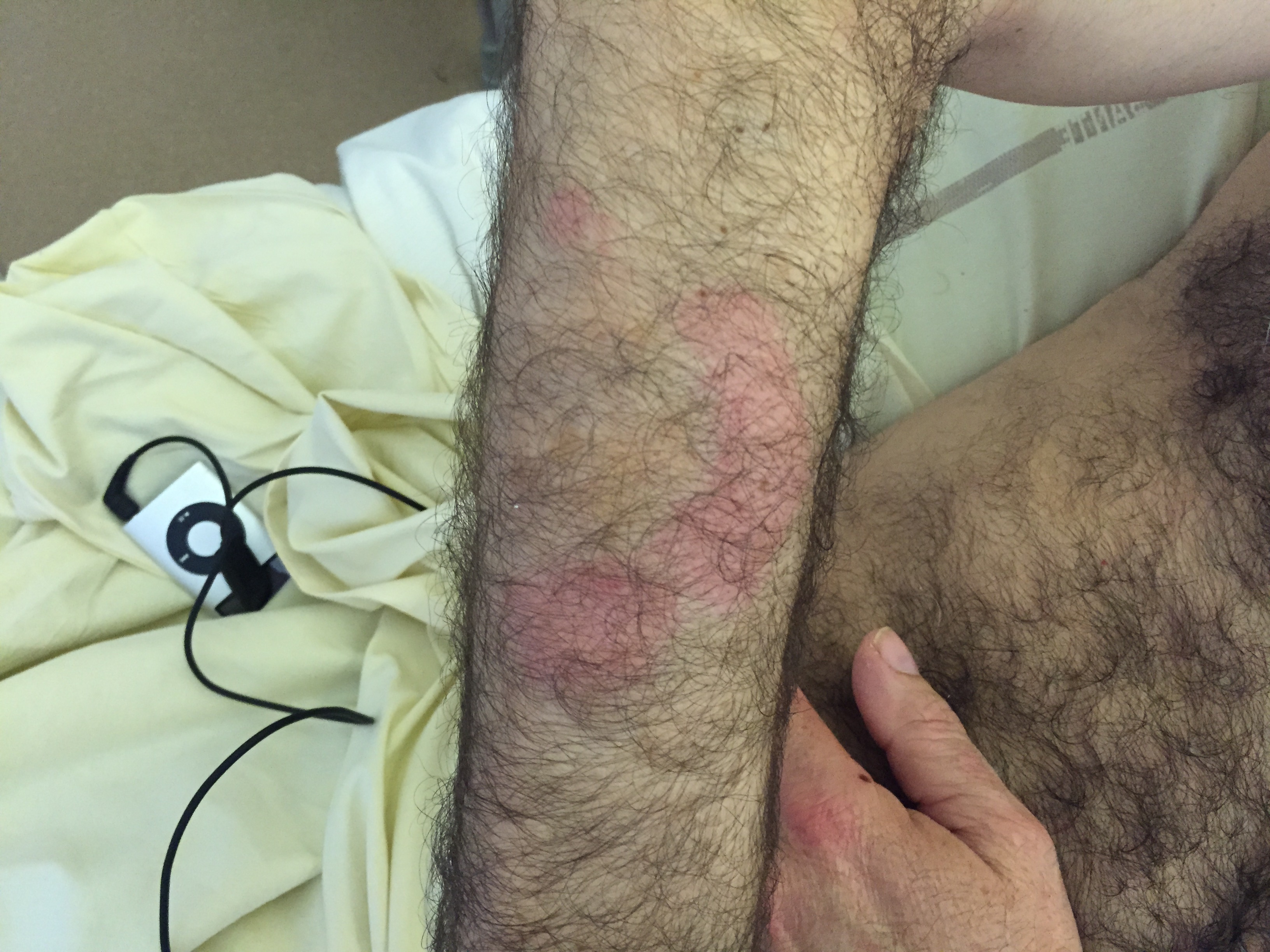 Erythème annulaire centrifuge dans le cadre d'une infection à Capnocytophaga Canimorsus concommitant d'une oligoarthrite fébrile