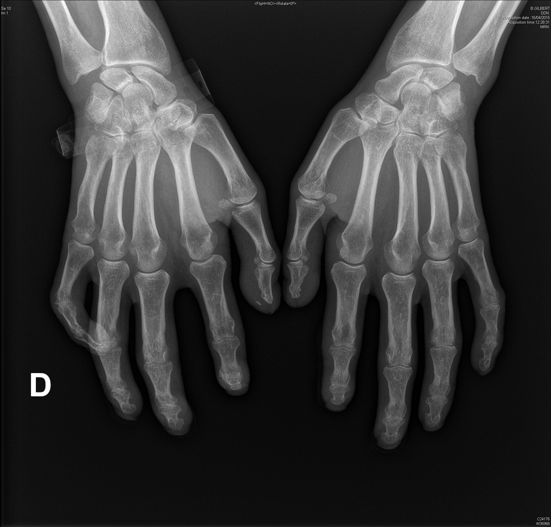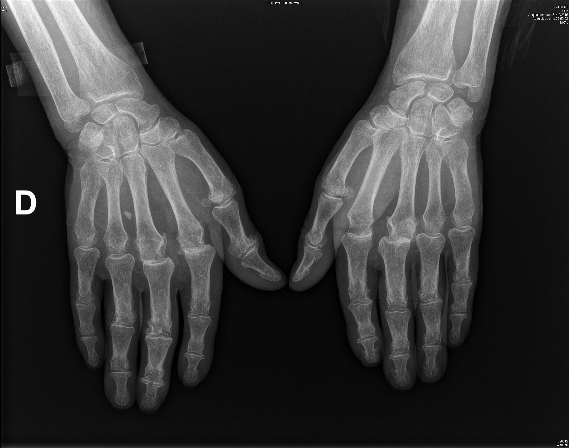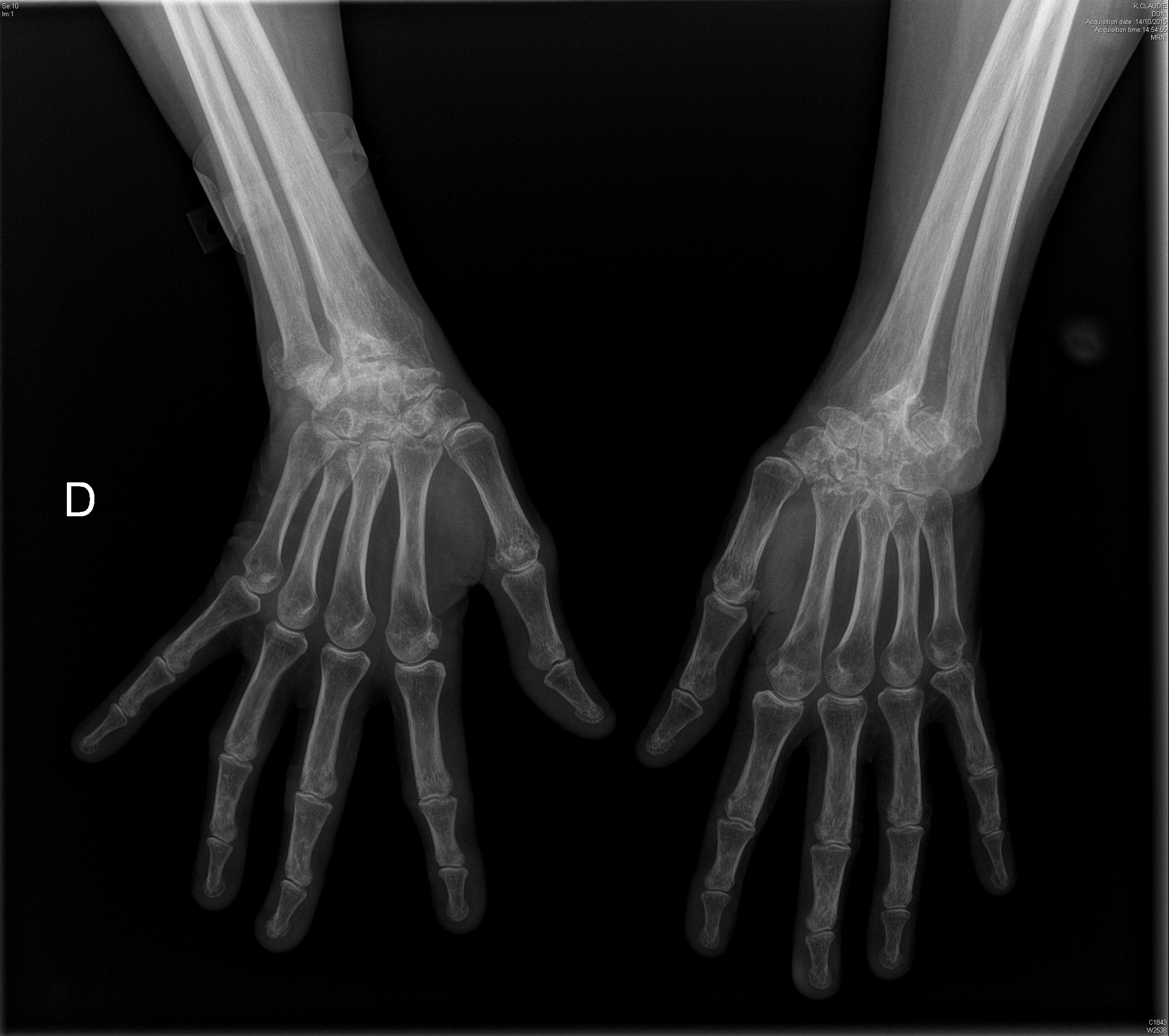 Carpite bilatérale évoluée dans le cadre d'une polyarthrite rhumatoïde