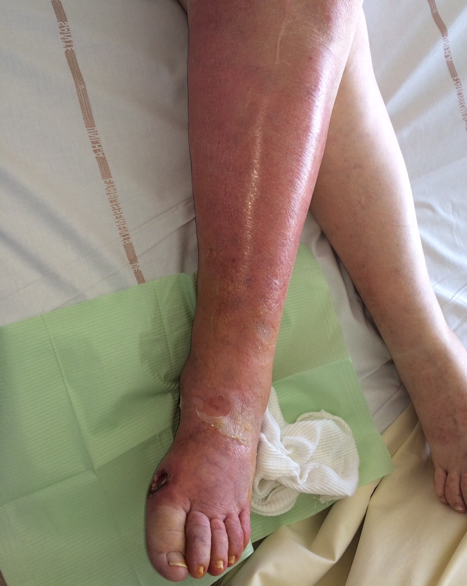 Erysipèle du membre inférieur gauche compliquant un ulcère