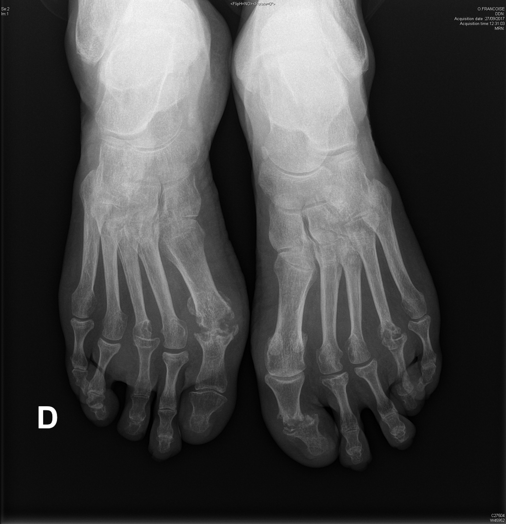 Polyarthrite rhumatoïde séropositive, sévèrement érosive aux pieds